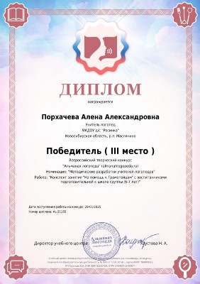 Учитель-логопед Порхачева Алена Александровна